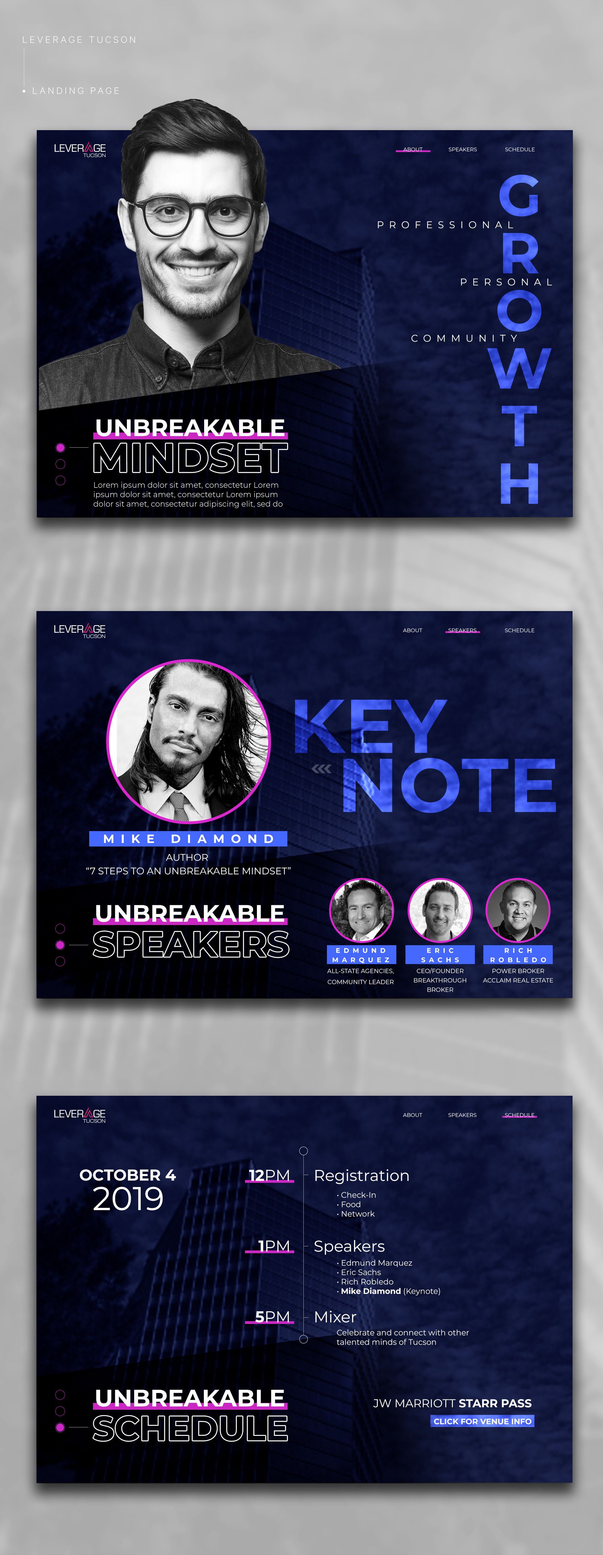 Leverage Tucson was created to help connect, guide and motivate individuals toward self-discovery, personal growth, and professional growth. My role: Creative Direction, Graphic Design, Digital Design.